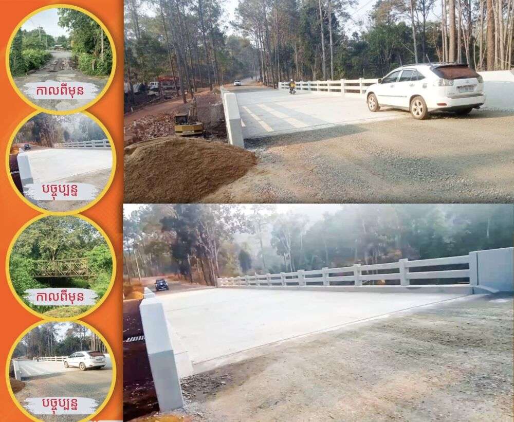 ភ្នំពេញ៖ ស្ពានបេតុងពីរកន្លែងជំនួសស្ពានចាស់ តូចចង្អៀត ទ្រុឌទ្រោម បង្កឱ្យមានការកកស្ទះអ្នកដំណើរពេលបុណ្យទានម្តងៗលើកំណាត់ផ្លូវជាតិលេខ៤៦ ដែលជាផ្លូវឡើងទៅឧទ្យានជាតិព្រះសុរាម្រិតកុសុមៈគិរីរម្យ(ឧទ្យានជាតិគិរីរម្យ) ស្ថិតនៅភូមិថ្មី ឃុំចំបក់ ស្រុកភ្នំស្រួច ខេត្តកំពង់ស្ពឺ បានបើកឱ្យប្រជាពលរដ្ឋបើកបរឆ្លងកាត់បណ្តោះអាសន្នហើយ នៅថ្ងៃទី១៥ ខែកុម្ភៈ ឆ្នាំ២០២៥នេះ។